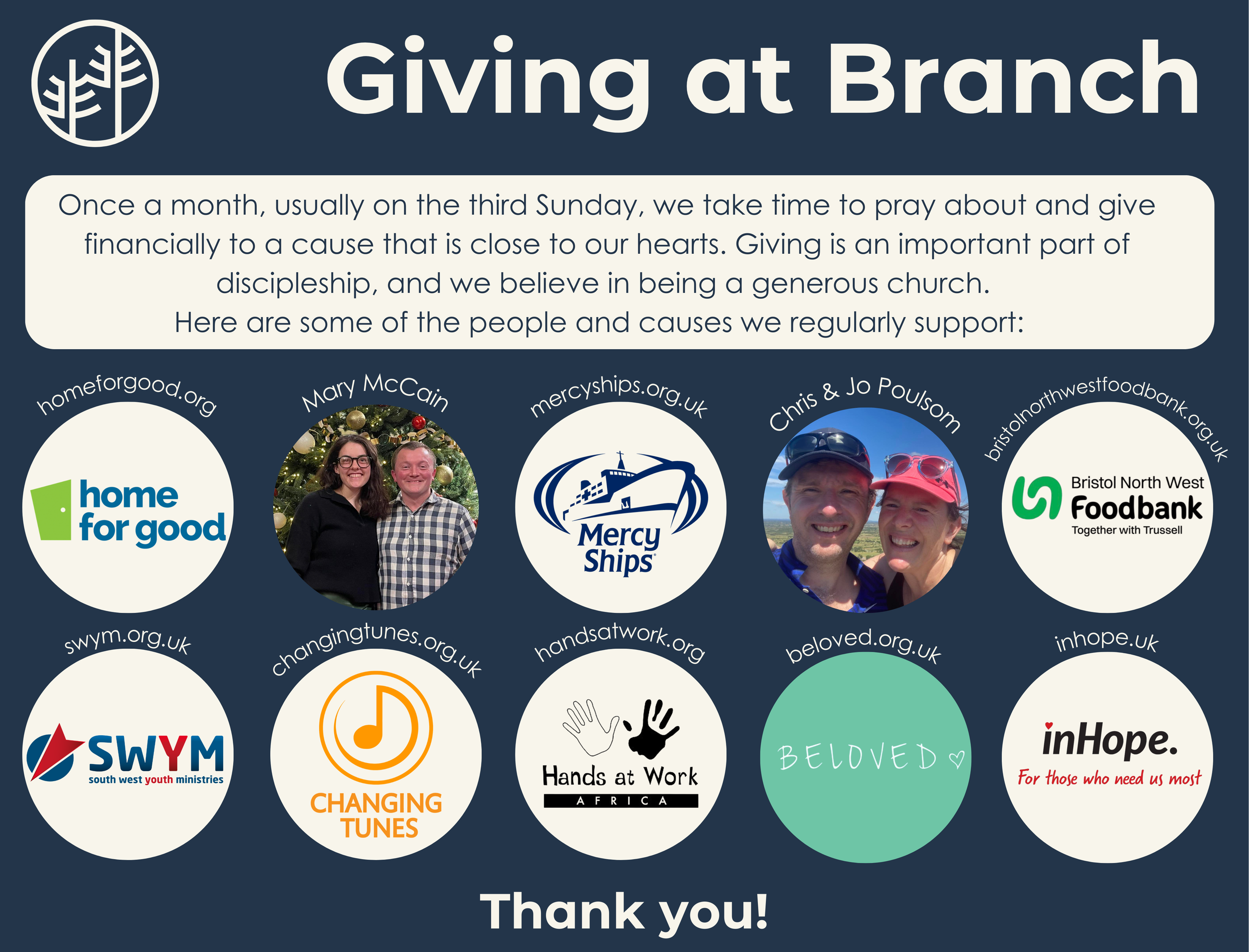 We're so thankful for the generosity of those who give regularly to Branch. Thank you for partnering with us in our vision to see Bristol transformed by the love and power of God.